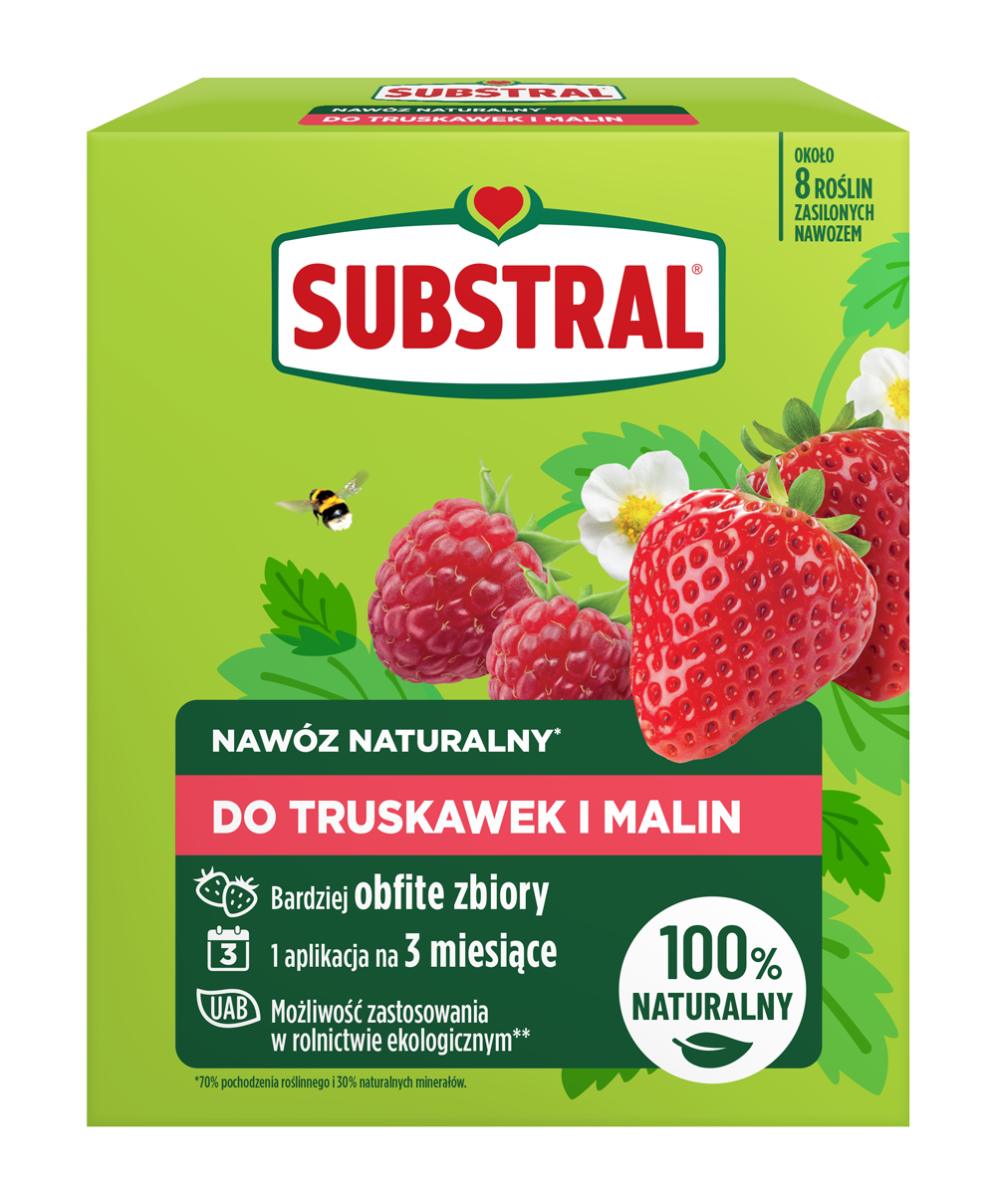 Väetis kõikidele maasikataimedele ja väikestele viljapõõsastele, nt. vaarikatele, karusmarjadele, mustsõstardele jne. 100% looduslik, mis on rikastatud orgaanilise mineraali tseoliidiga, mis väetisega kombineerituna säilitab mullas toitaineid, tagades väetise parema omastamise. Toidab taimi tänu pikatoimelisele koostisele kuni 3 kuud, mille tulemuseks on rikkalikum saak. Koosneb taimsetest koostisosadest, rikastatud looduslike mineraalidega, ei sisalda loomset päritolu aineid ja on spetsiaalselt loodud ebameeldivate lõhnade vältimiseks. .