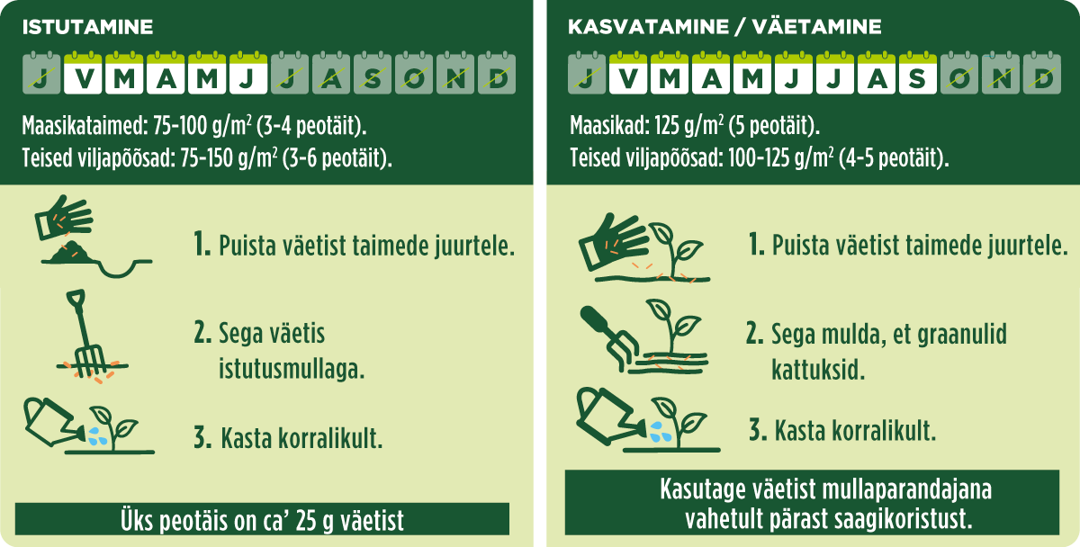 Kasutage väetist mullaparandajana vahetult pärast saagikoristust.
