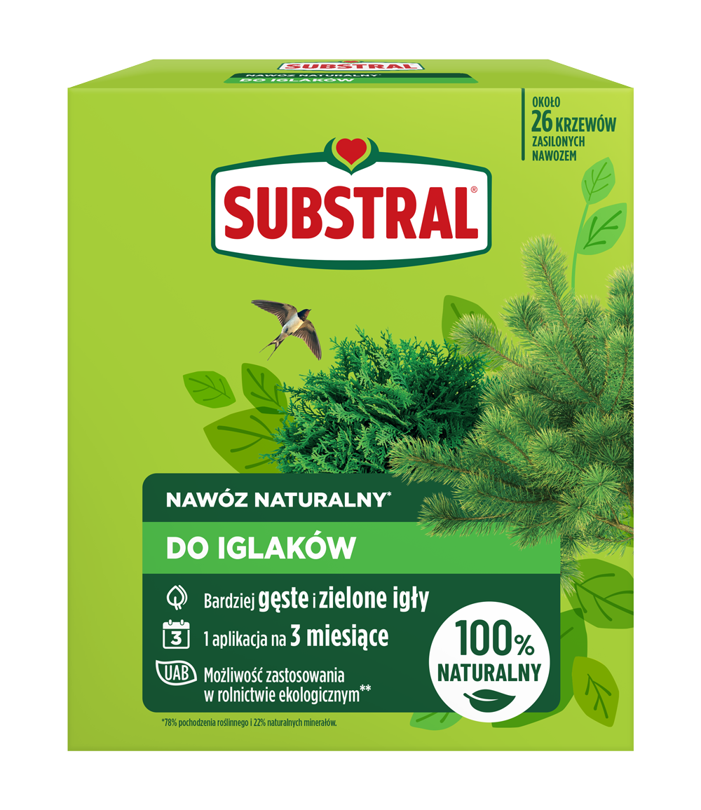 Väetis kõikidele okaspuude ja -põõsaste sortidele hekkides või üksikult (kuused, kadakad, lehised, seeder, mänd, jugapuu, elupuu, küpress) ja ka heitlehiste põõsaste (pukspuud, liguster, kikerherne, jaapani küdoonia jne) väetamiseks. 100% looduslik, mis on rikastatud orgaanilise mineraali tseoliidiga, mis väetisega kombineerituna säilitab mullas toitaineid, tagades väetise parema omastamise. Toidab taimi tänu pikatoimelisele koostisele kuni 3 kuud, mille tulemuseks on rikkalikum saak. Koosneb taimsetest koostisosadest, rikastatud looduslike mineraalidega, ei sisalda loomset päritolu aineid ja on spetsiaalselt loodud ebameeldivate lõhnade vältimiseks. .