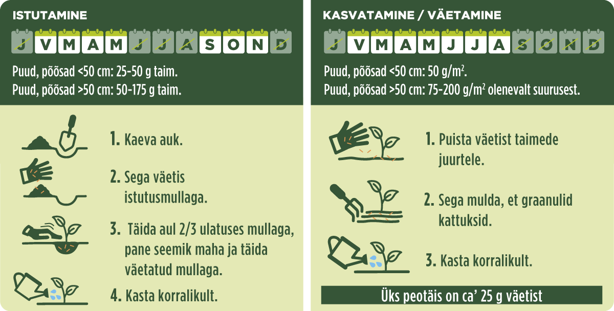 Üks peotäis on ca’ 25 g väetist.